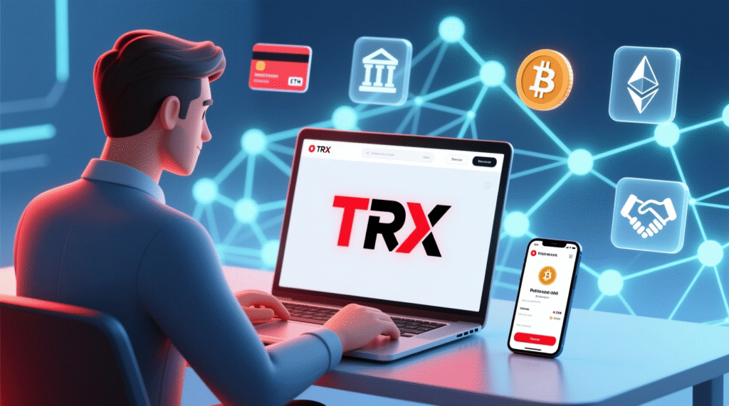 Purchasing cryptocurrency with a card is one of the most convenient methods for beginners. TRX is supported by a limited number of services, but it is still possible to purchase it with a card. At the time of publication, only one major provider offers this option.
